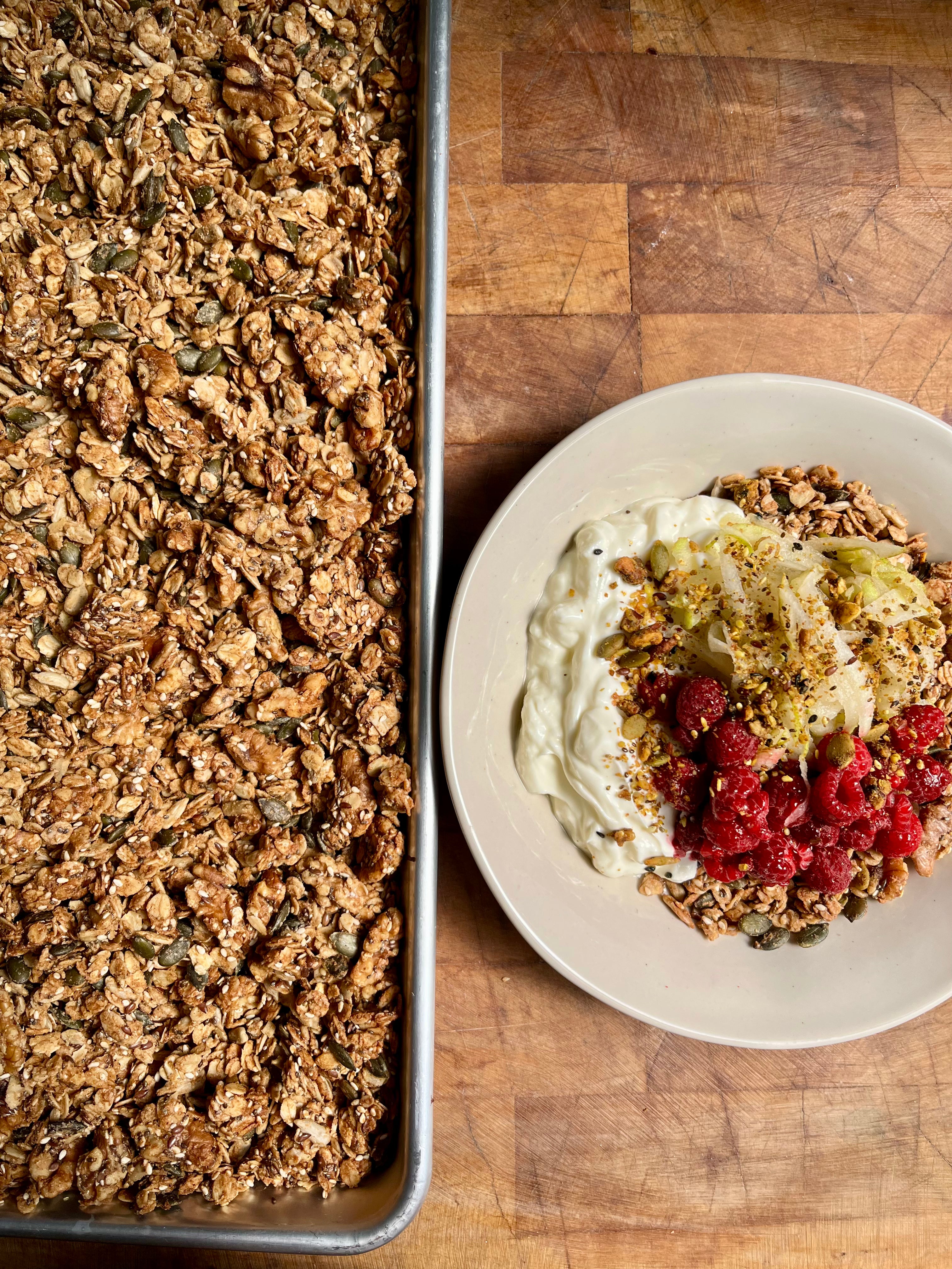 I’ve been making and sharing this Tahini, Maple & Walnut Granola for years, and it’s always a hit. Packed with nutrient-dense ingredients, it’s full of fibre, minerals and healthy fats from walnuts, chia, flax and seeds—providing steady energy without spiking blood sugar. Naturally low in sugar and rich in plant-based omega-3s, it supports brain, heart and overall wellbeing. Enjoy it with Greek yoghurt for probiotics and protein, and add fresh fruit for an extra boost of fibre and polyphenols.