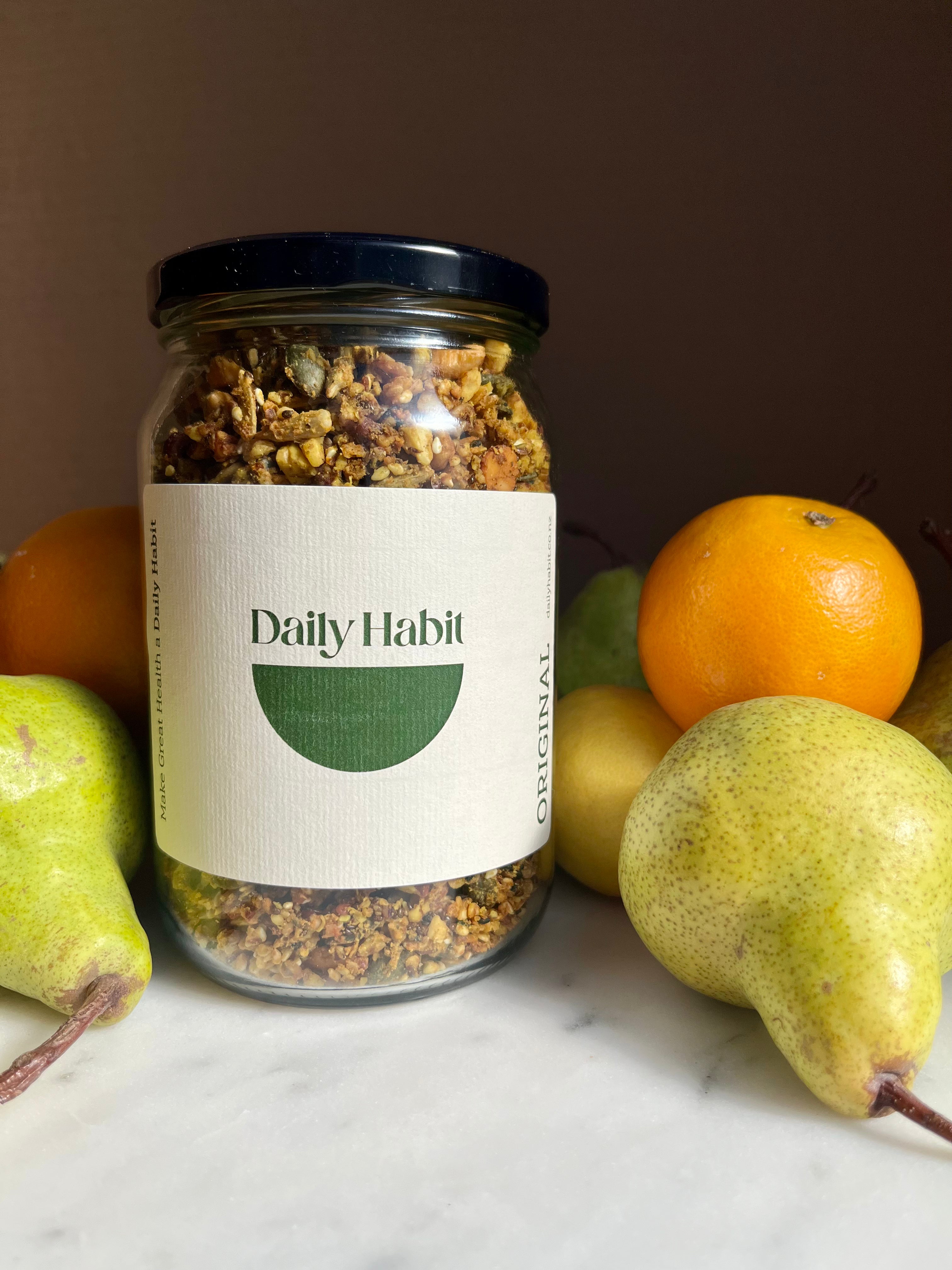 Keep your Daily Blend fresh, visible, and ready for daily use with our custom Daily Habit storage jar. Made from durable glass with a screw top lid and beautiful patterned label, it’s the perfect countertop companion for your new daily ritual.